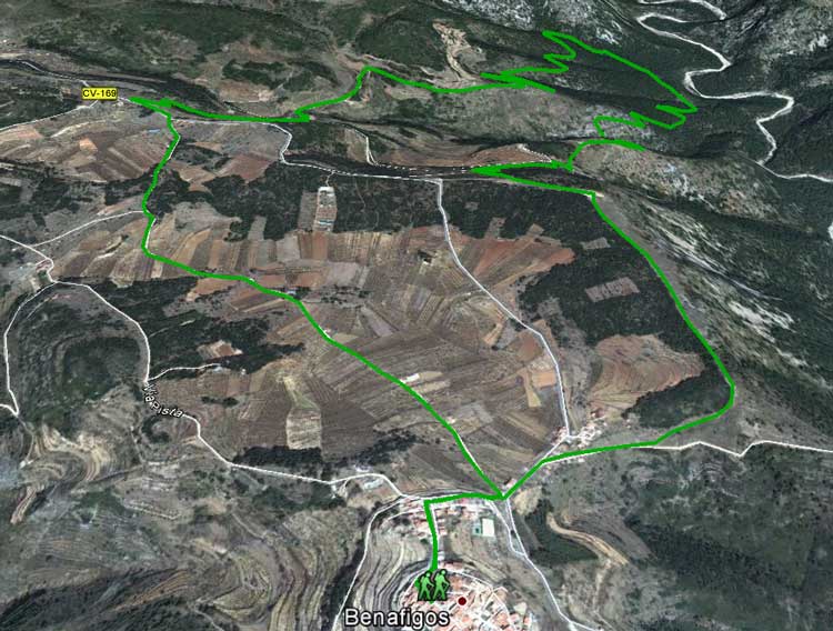 Ruta circular - Dificultat tècnica: moderat. Pujant: 632 m. - Altitud màxima: 932 m. - Baixant: 632 m. - Altitud mínima: 504 m.